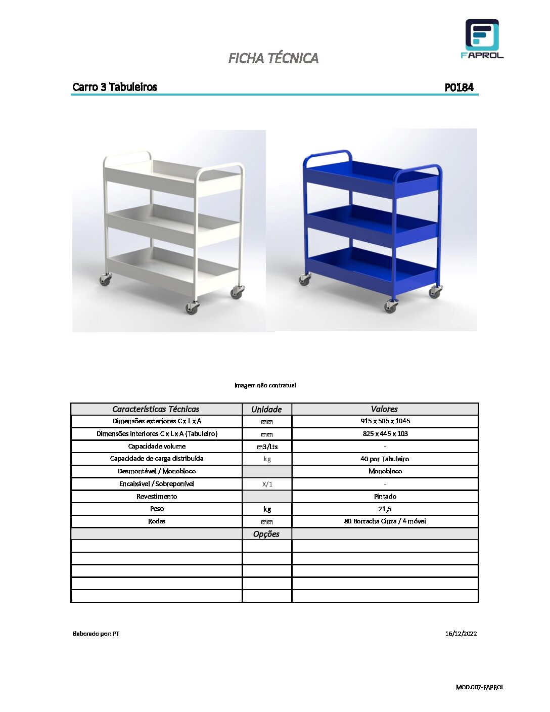 Carrinho com 2 ou 3 tabuleiros para transporte de pequenas peças/ ferramentas ou apoio.