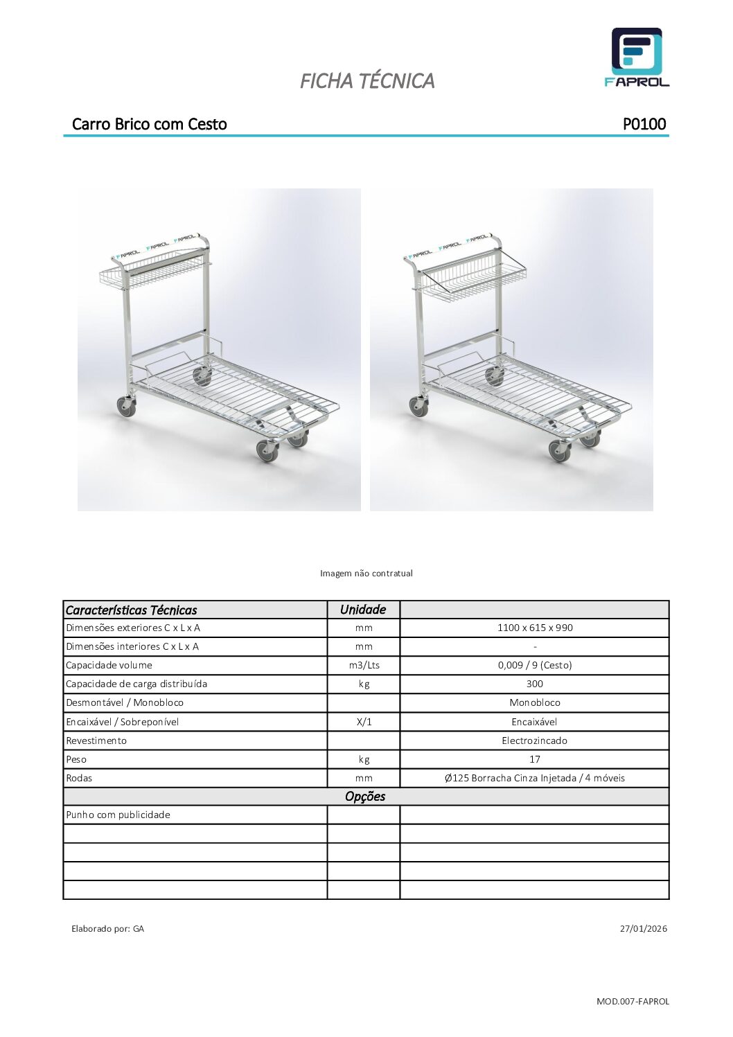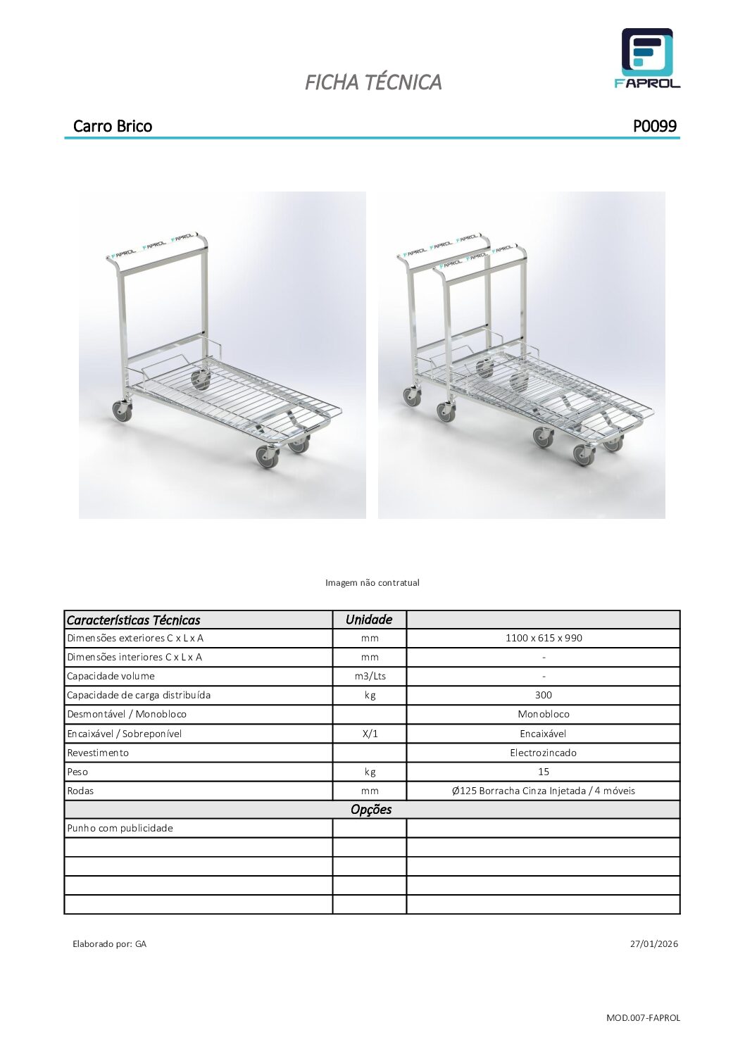 A sua plataforma encaixável permite otimizar o espaço de armazenagem e facilitar a utilização em ambientes com elevado fluxo de trabalho. Construído com estrutura reforçada, oferece grande resistência e durabilidade, suportando uma capacidade de carga até 300 kg.