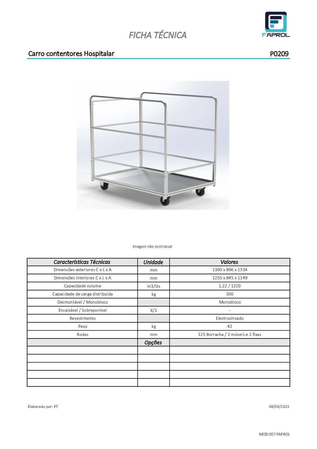 Carro contentores Hospitalar é especialmente desenvolvido para o transporte seguro e organizado de resíduos em ambientes hospitalares. Carro contentores Hospitalar com capacidade de carga de 300kg e estrutura em monobloco. Este Carro contentores Hospitalar facilita o transporte seguro de grandes volumes, preservando a higiene e segurança do local. Equipado com rodas robustas, permite manobras suaves e maior estabilidade. Opção de acabamento electrozincado ou Inox.