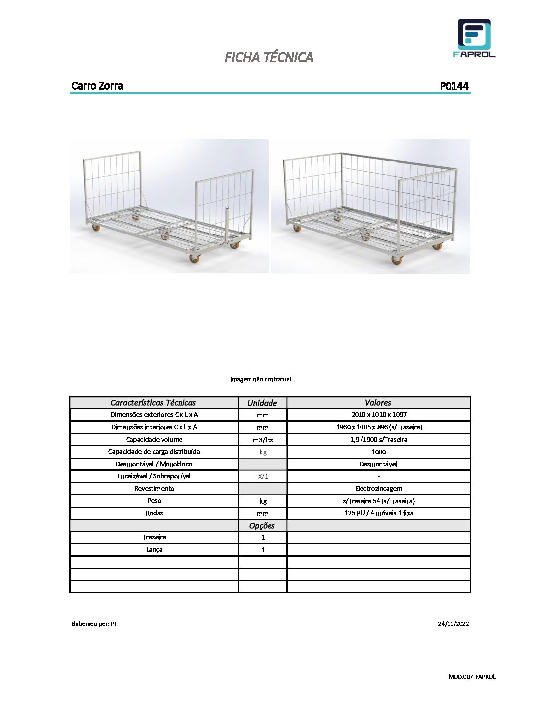 Carro Zorra de 2 metros com 2 lados, equipado com reboque e lança.