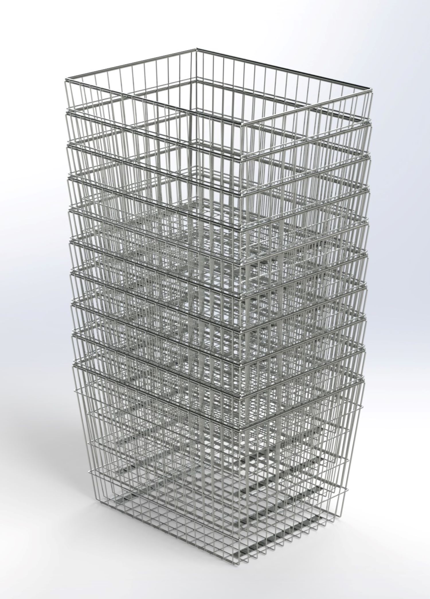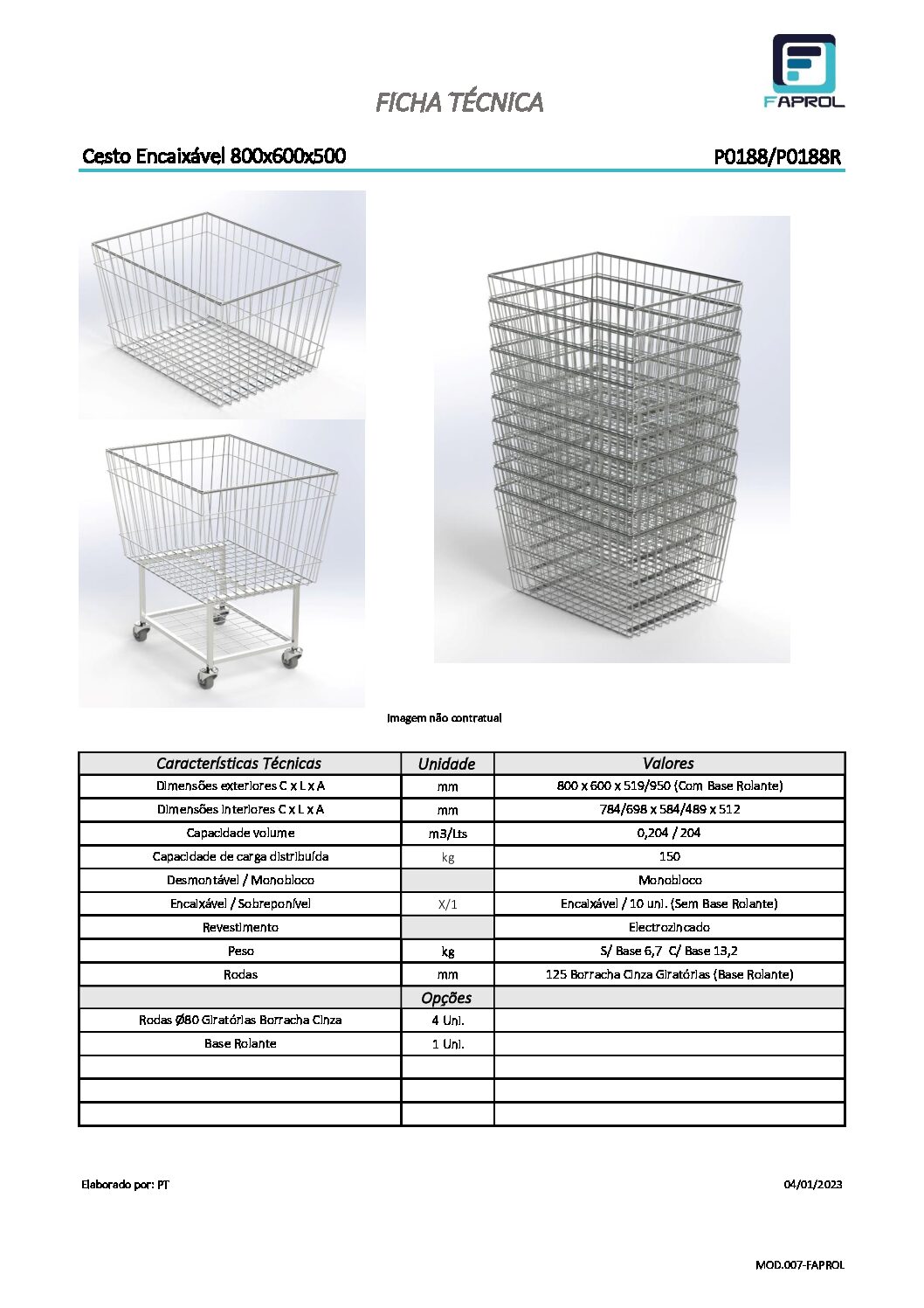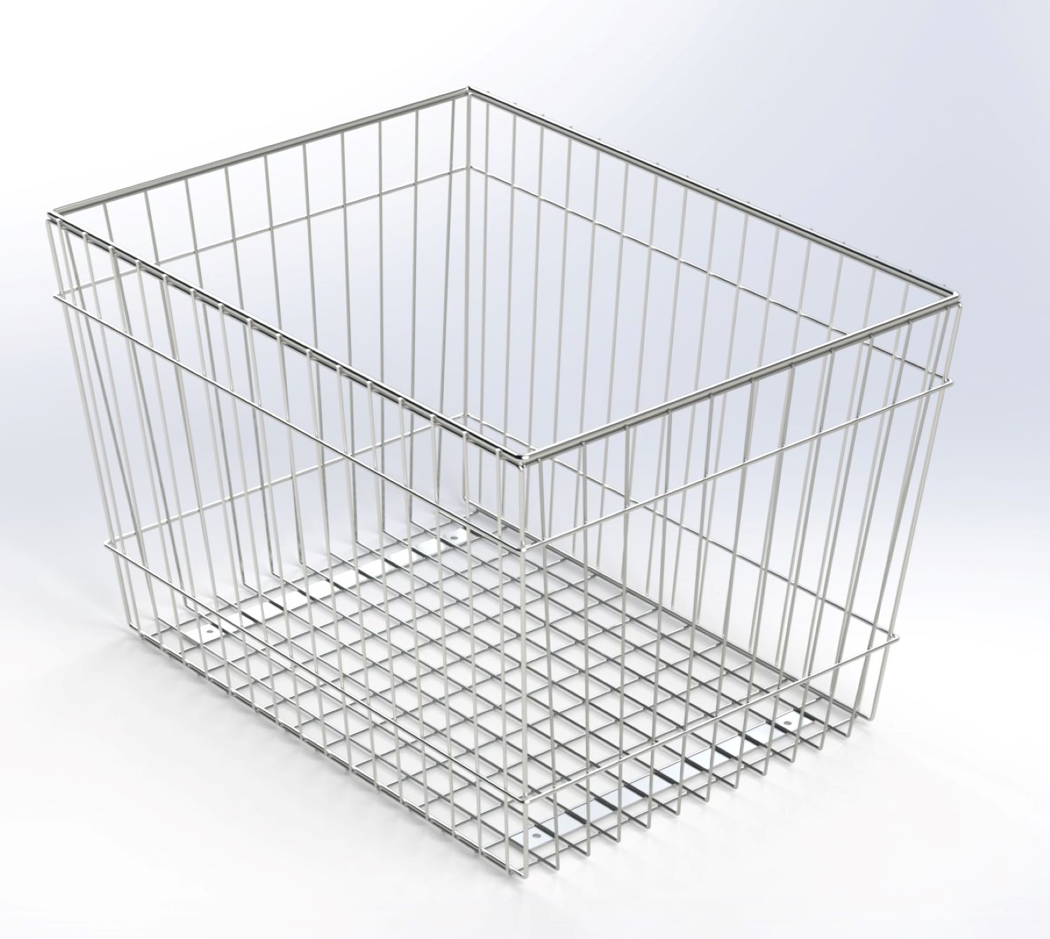 Cesto de arame encaixável, com possibilidade de rodas. Cesto para armazenagem e transporte de produtos leves e de reduzida dimensão. Pedir Orçamento: