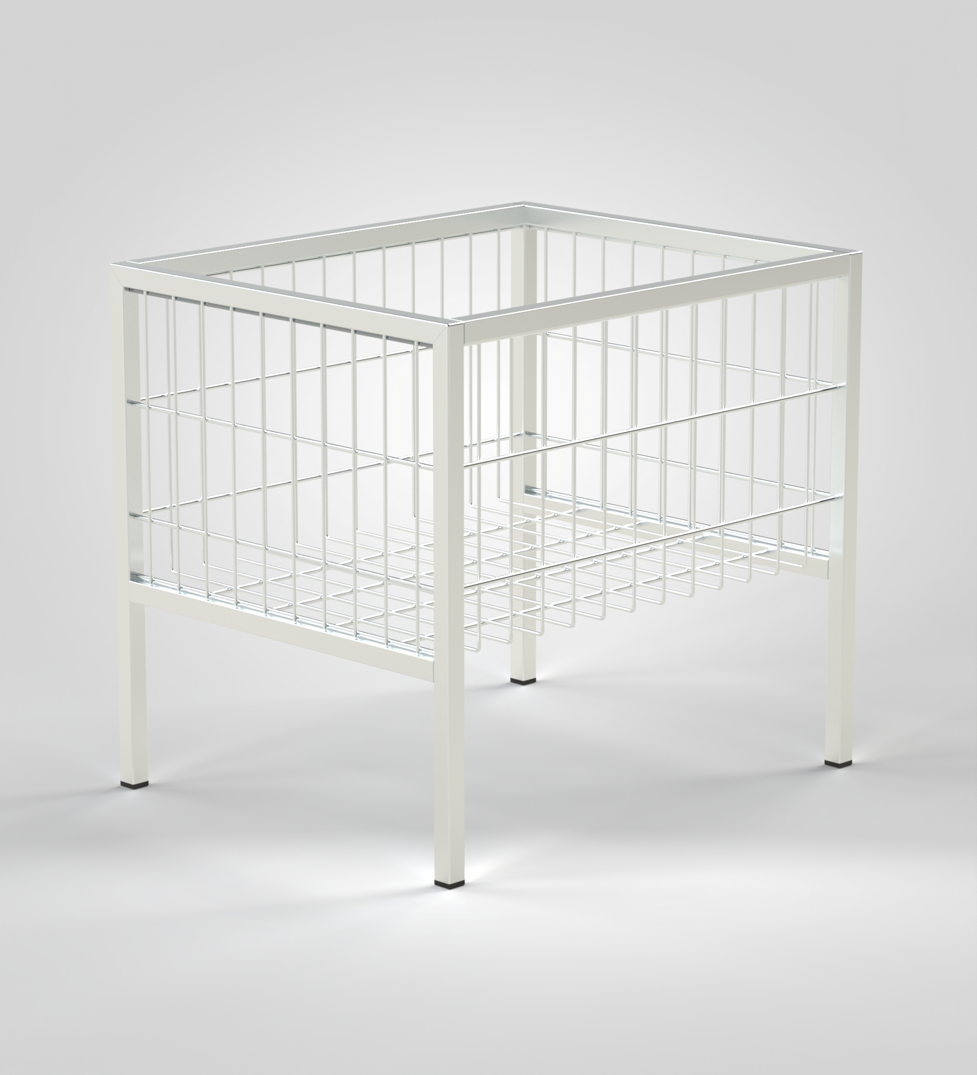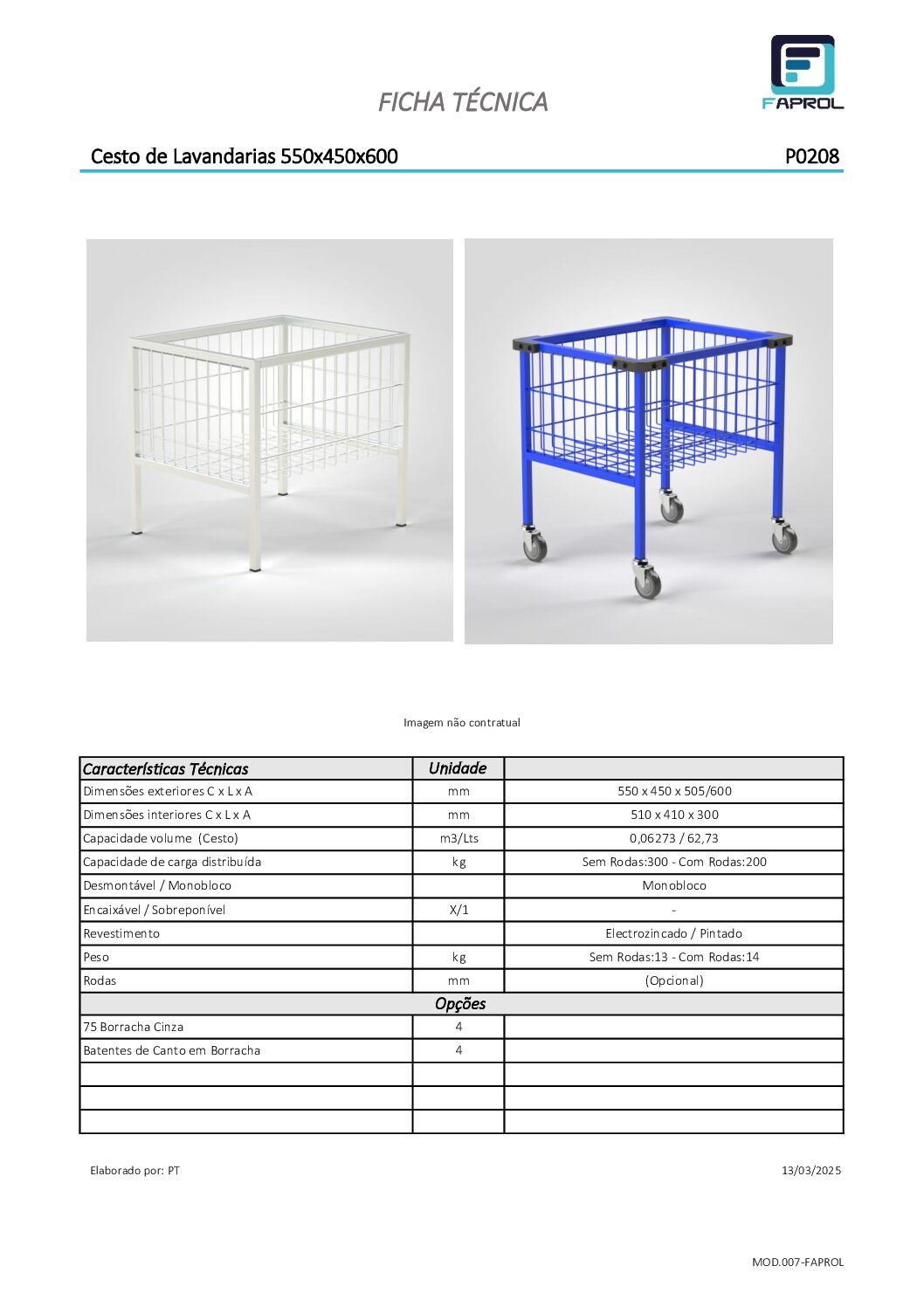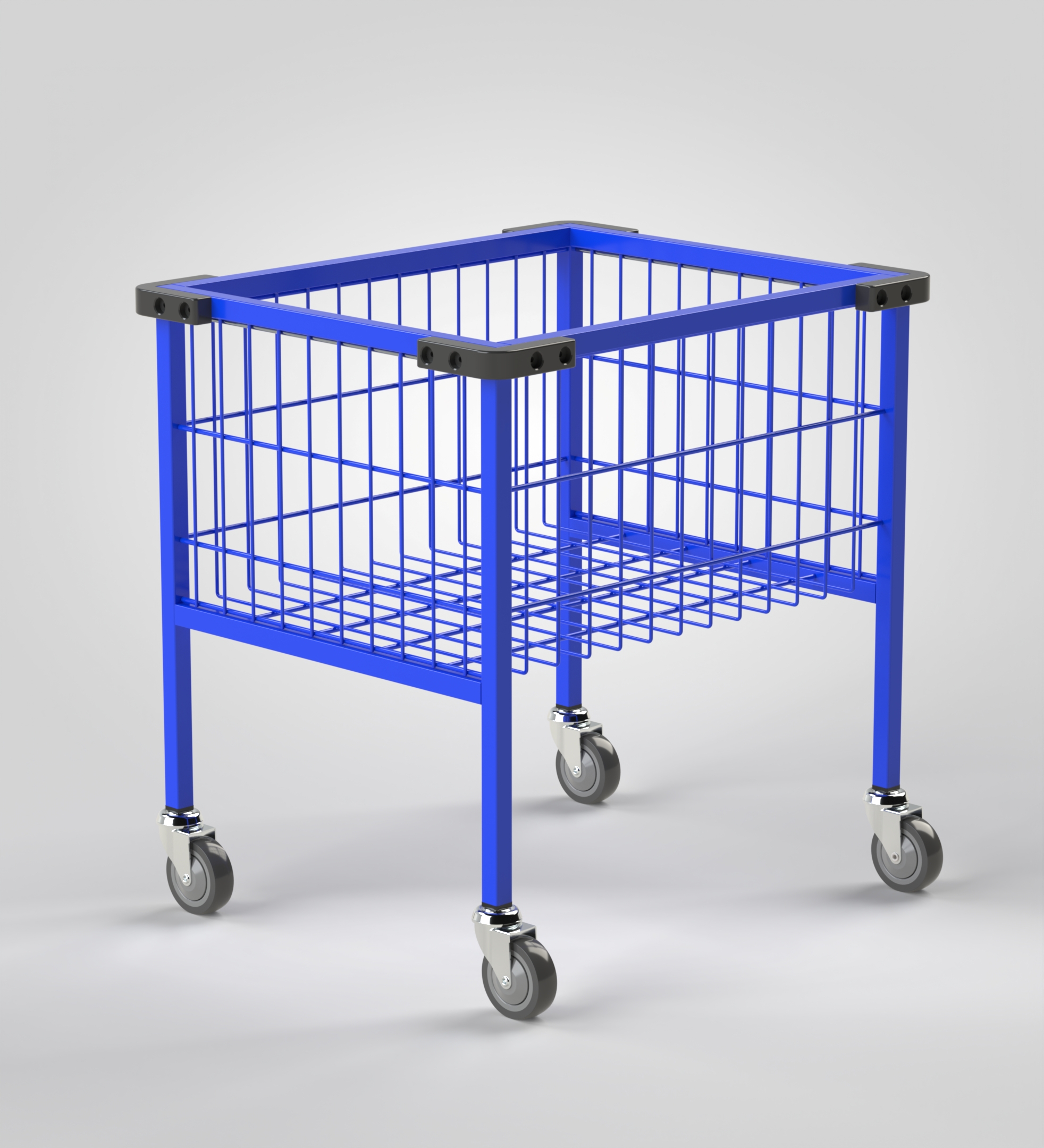 Cesto de Lavandarias 550x450x600mm é especialmente projetado para ambientes de lavandaria. Cesto de Lavandarias 550x450x600mm, com estrutura monobloco e revestimento eletrozincado. Opção de rodas para facilitar a mobilidade, cantos de borracha ou pintado. Tem uma capacidade de carga de 300kg sem rodas e de 200kg com rodas.