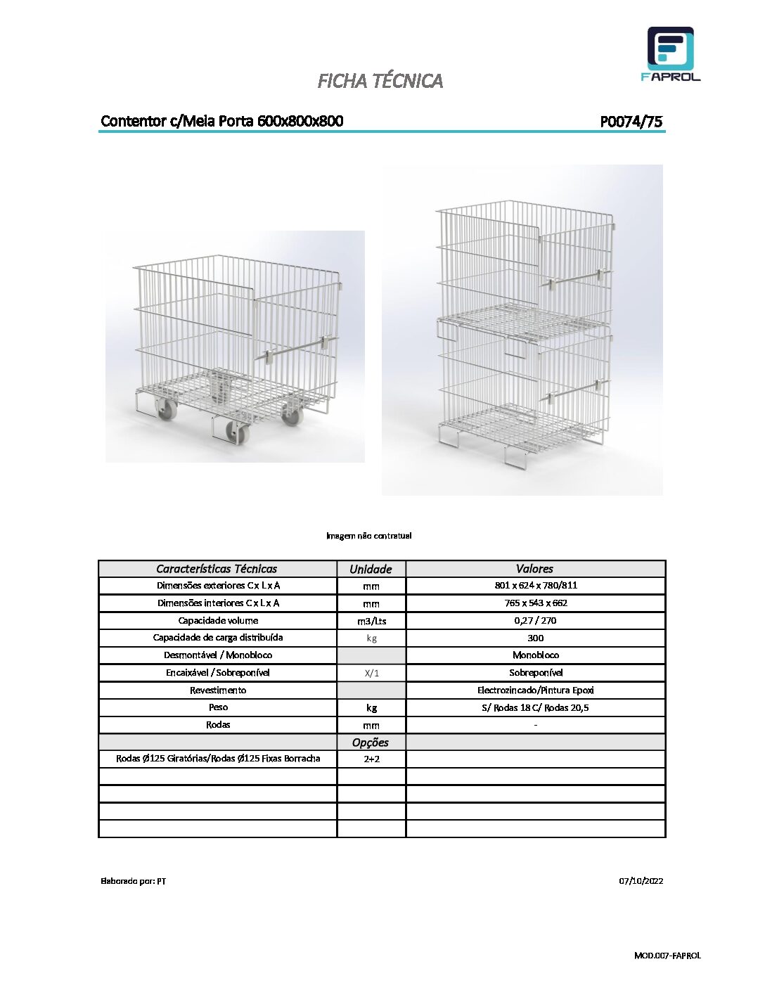 O Contentor com Meia Porta 600×800×800 mm pode ser empilhado, otimizando o espaço disponível em armazéns ou linhas de produção. Está disponível com opção de rodas, que proporcionam mobilidade e facilidade de manuseamento, e com pintura epoxy, que aumenta a resistência à corrosão e ao desgaste.