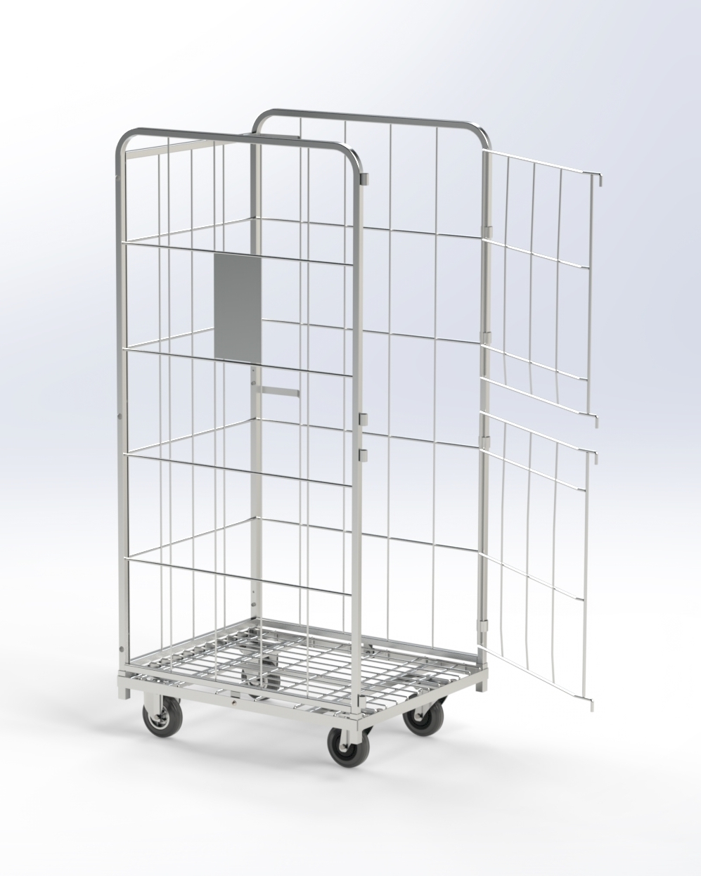 Roll Container LVD, Projetado para oferecer mobilidade eficiente com o mínimo esforço, o Roll Container LVD com 4 lados e 2 meias portas destaca-se pela sua leveza, que facilita o manuseamento e reduz os custos associados ao transporte.